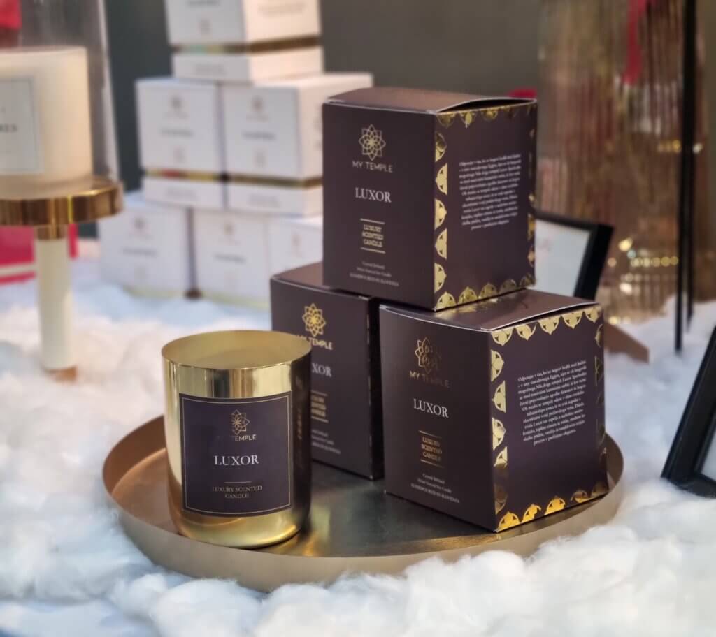 Sveče My Temple so narejene iz naravnega sojinega voska in bombažnih stenjev, odišavljene z prefinjenimi dišavami iz Francije.